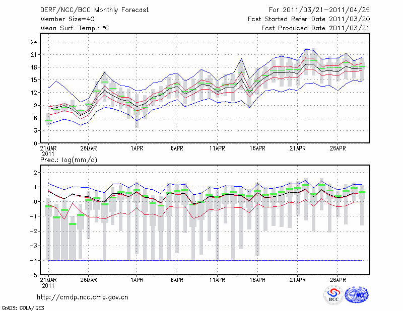 东 台 (LAT:32.87 LON:120.32) 2011-03-21        预测