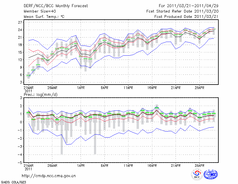 南 昌 (LAT:28.60 LON:115.92) 2011-03-21        预测