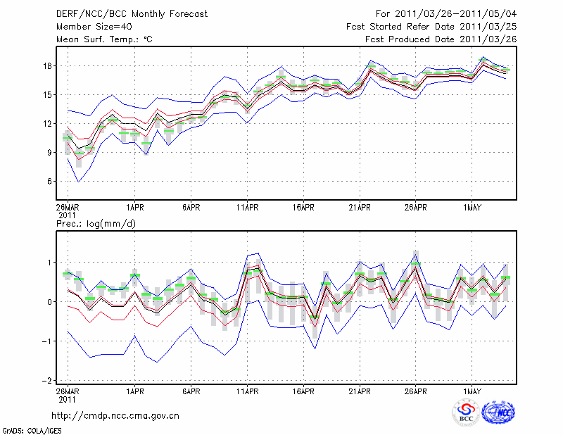 丽 江 (LAT:26.83 LON:100.47) 2011-03-26        预测