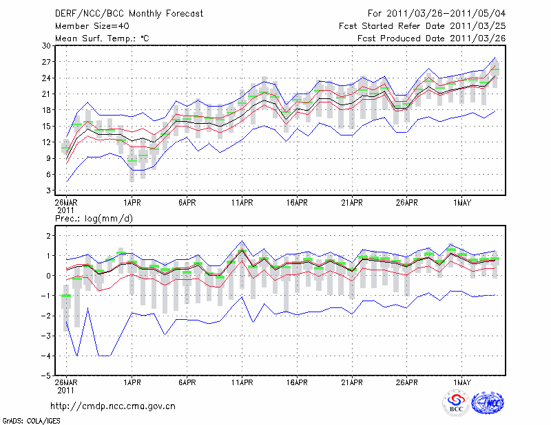 钟 祥 (LAT:31.17 LON:112.57) 2011-03-26        预测
