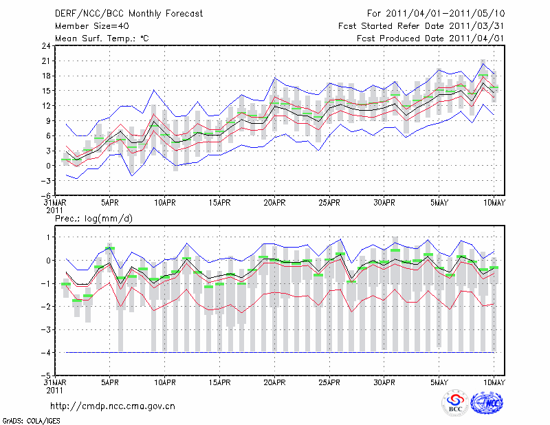 哈 尔 滨 (LAT:45.75 LON:126.77) 2011-04-01        预测
