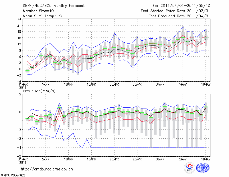 鸡 西 (LAT:45.28 LON:130.95) 2011-04-01        预测