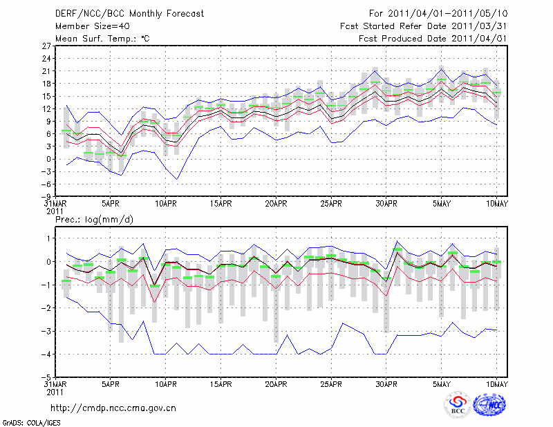 阿 勒 泰 (LAT:47.73 LON:88.08) 2011-04-01        预测