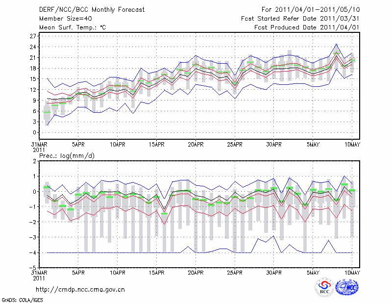 延 安 (LAT:36.60 LON:109.50) 2011-04-01        预测