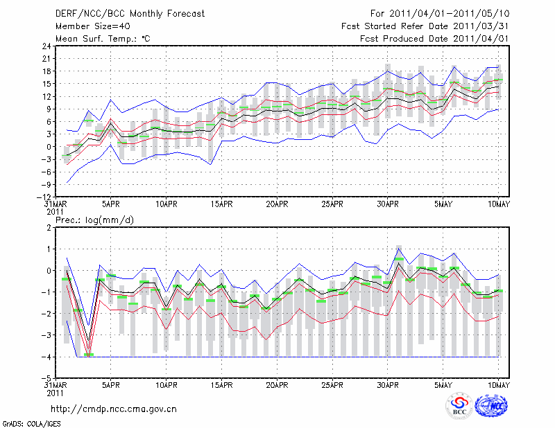 锡林浩特 (LAT:43.95 LON:116.07) 2011-04-01        预测