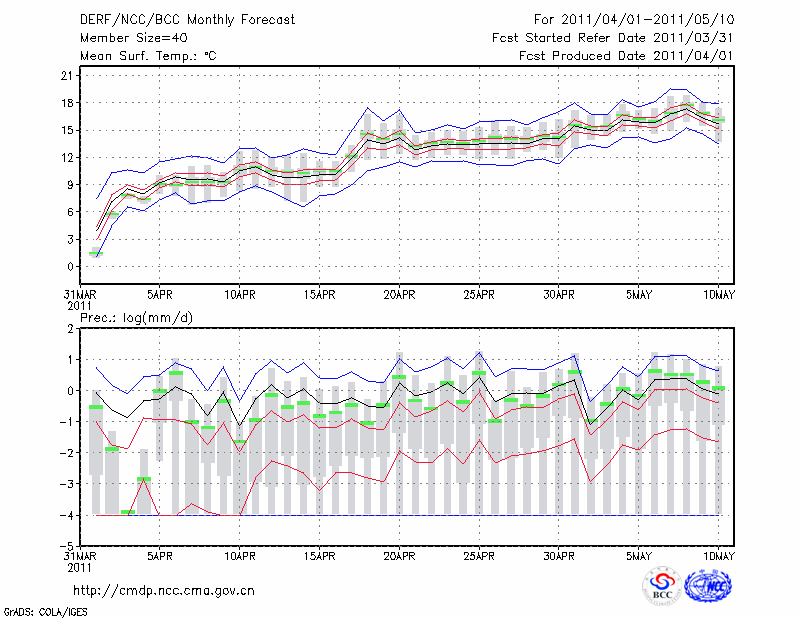 青 岛 (LAT:36.07 LON:120.33) 2011-04-01        预测