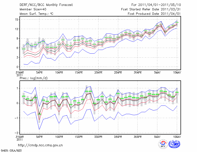 甘 孜 (LAT:31.62 LON:100.00) 2011-04-01        预测