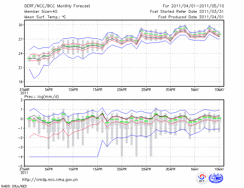 景 洪 (LAT:22.02 LON:100.80) 2011-04-01        预测