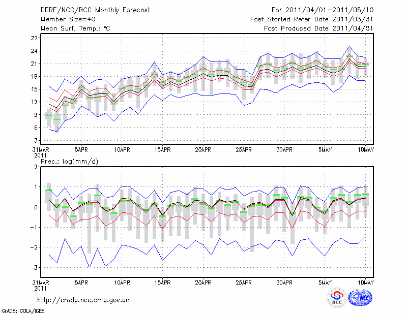 西 安 (LAT:34.30 LON:108.93) 2011-04-01        预测