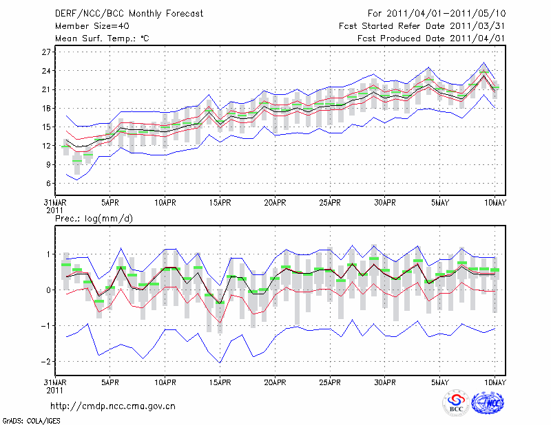 汉 中 (LAT:33.07 LON:107.03) 2011-04-01        预测