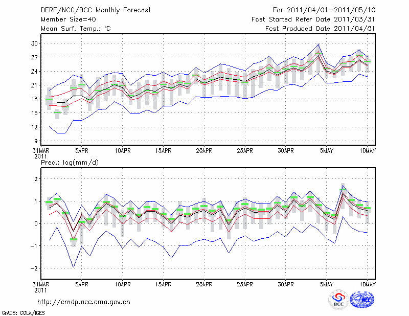 内 江 (LAT:29.58 LON:105.05) 2011-04-01        预测