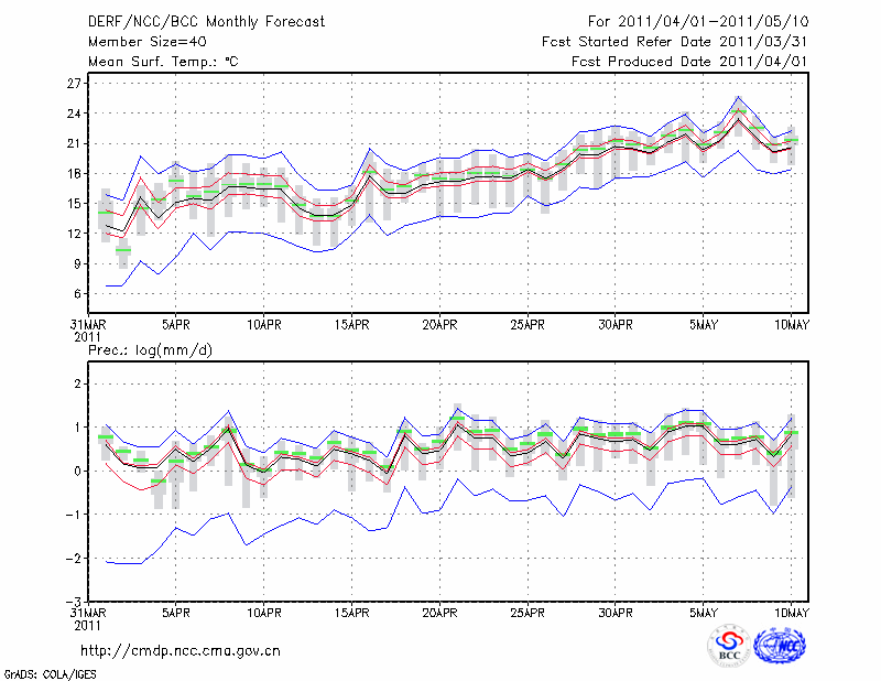毕 节 (LAT:27.30 LON:105.23) 2011-04-01        预测