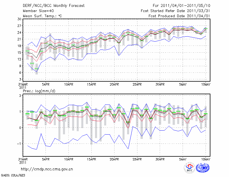 芷 江 (LAT:27.45 LON:109.68) 2011-04-01        预测