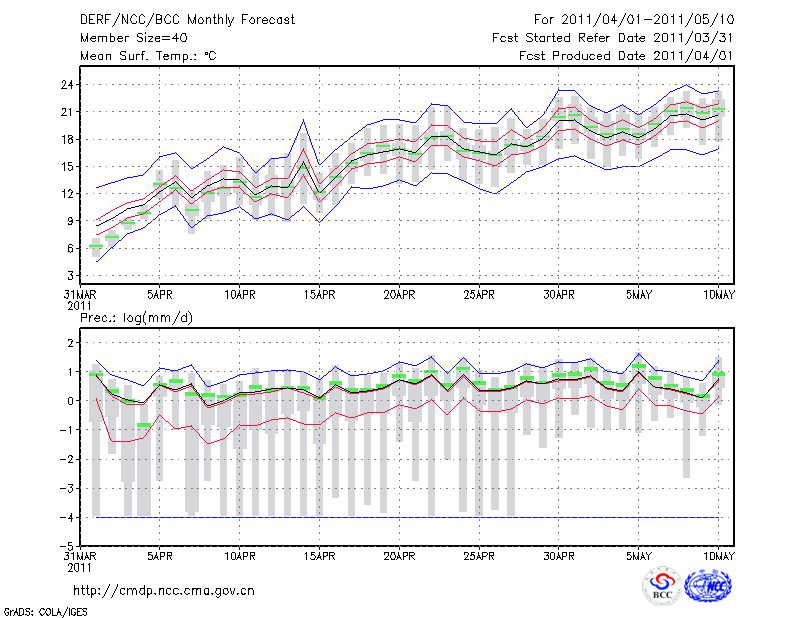 东 台 (LAT:32.87 LON:120.32) 2011-04-01        预测