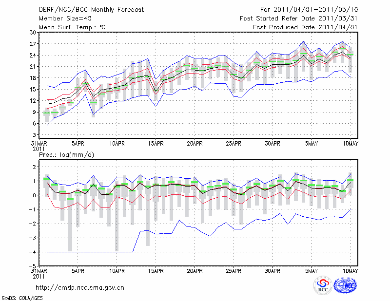 合 肥 (LAT:31.87 LON:117.23) 2011-04-01        预测