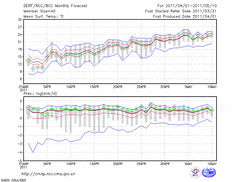 屯 溪 (LAT:29.71 LON:118.28) 2011-04-01        预测