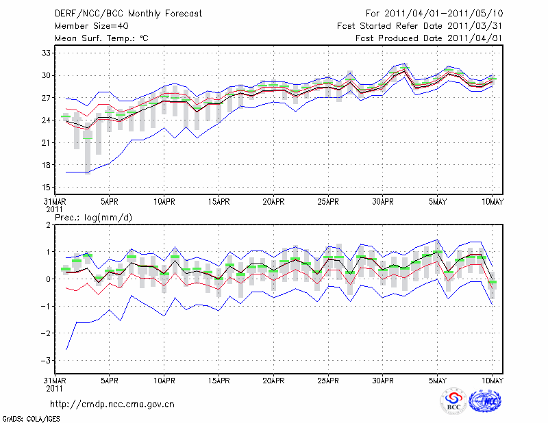 百 色 (LAT:23.90 LON:106.60) 2011-04-01        预测