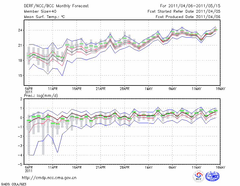 临 沧 (LAT:23.95 LON:100.22) 2011-04-06        预测