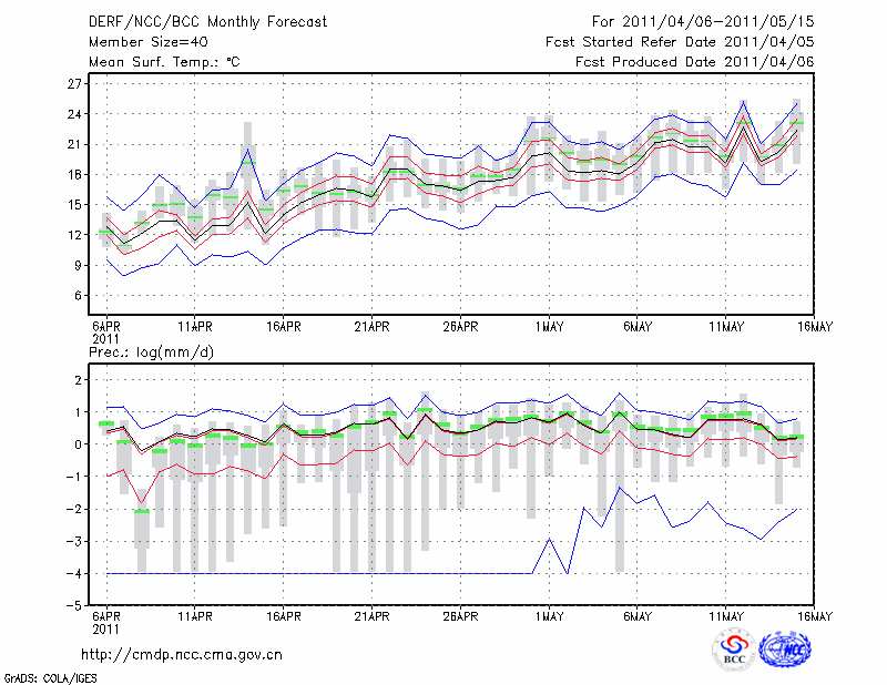 东 台 (LAT:32.87 LON:120.32) 2011-04-06        预测