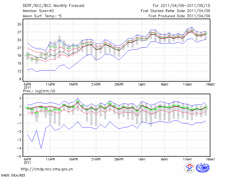 南 昌 (LAT:28.60 LON:115.92) 2011-04-06        预测
