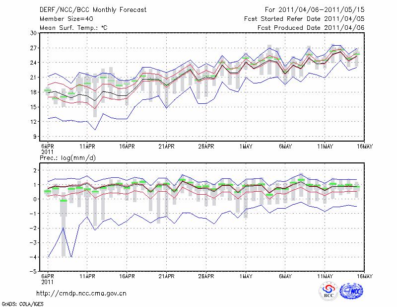 衢 县 (LAT:28.97 LON:118.87) 2011-04-06        预测