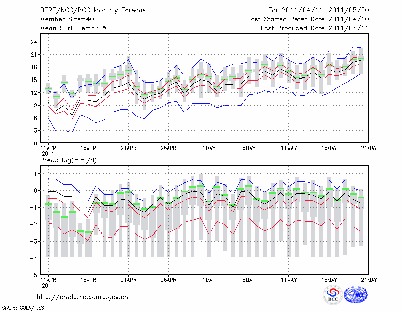呼和浩特 (LAT:40.82 LON:111.68) 2011-04-11        预测