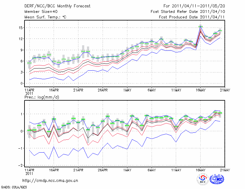 玉 树 (LAT:33.02 LON:97.02) 2011-04-11        预测