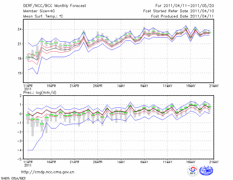 临 沧 (LAT:23.95 LON:100.22) 2011-04-11        预测