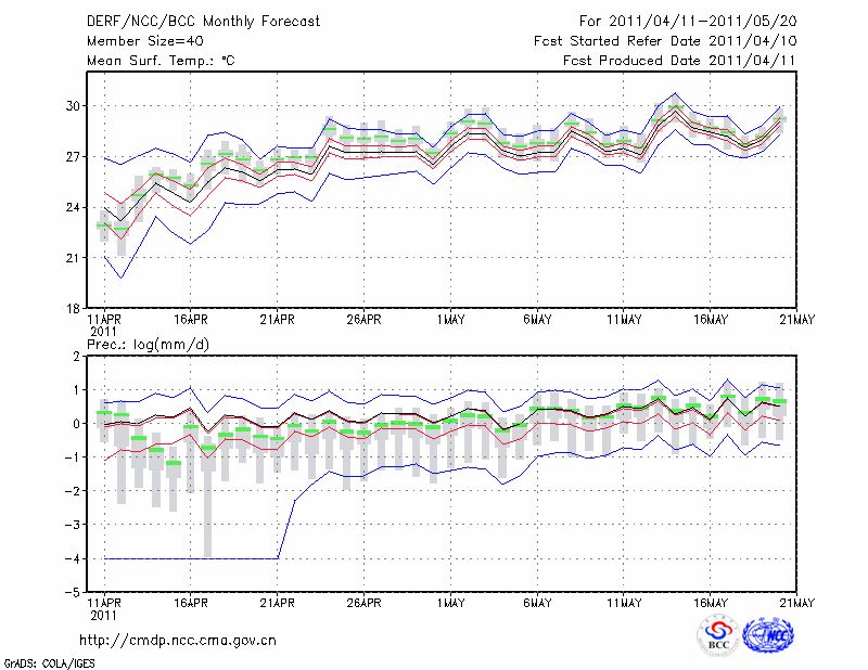 景 洪 (LAT:22.02 LON:100.80) 2011-04-11        预测