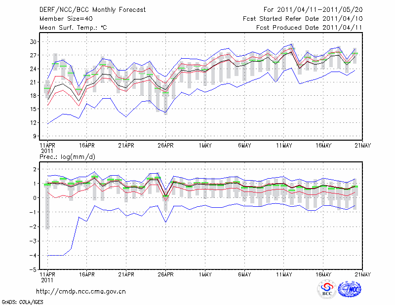 岳 阳 (LAT:29.38 LON:113.08) 2011-04-11        预测