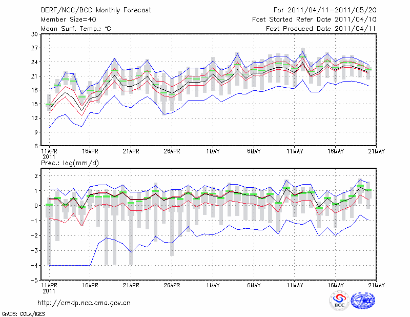 南 京 (LAT:32.00 LON:118.80) 2011-04-11        预测