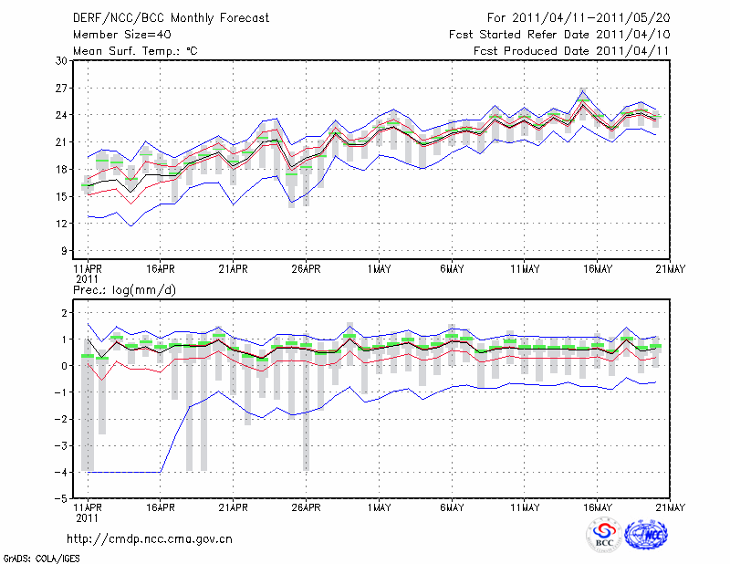 温 州 (LAT:28.02 LON:120.67) 2011-04-11        预测