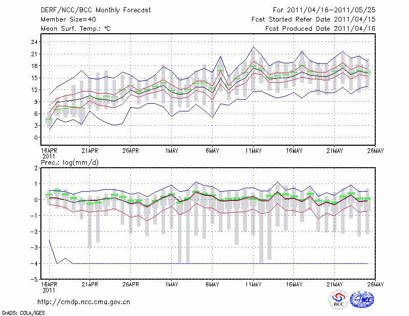 牡 丹 江 (LAT:44.57 LON:129.60) 2011-04-16        预测