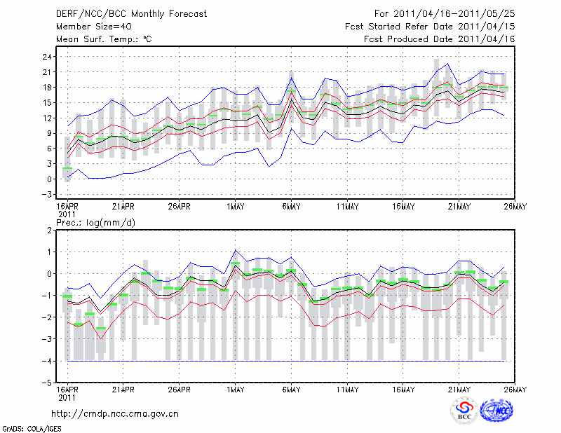 锡林浩特 (LAT:43.95 LON:116.07) 2011-04-16        预测