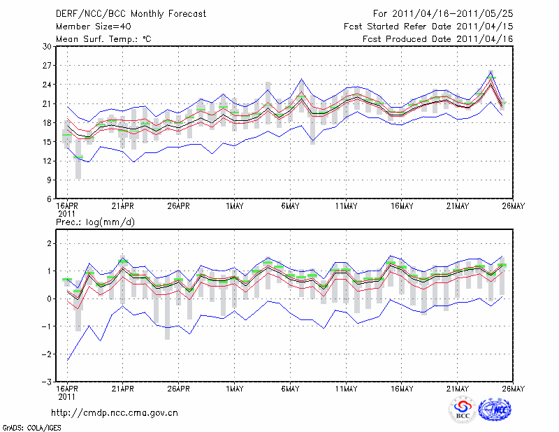 毕 节 (LAT:27.30 LON:105.23) 2011-04-16        预测