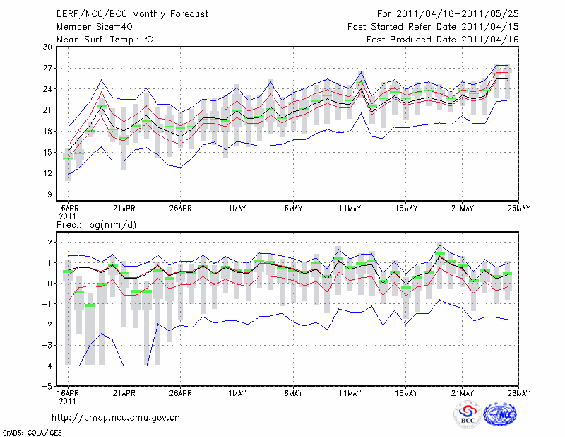 南 京 (LAT:32.00 LON:118.80) 2011-04-16        预测