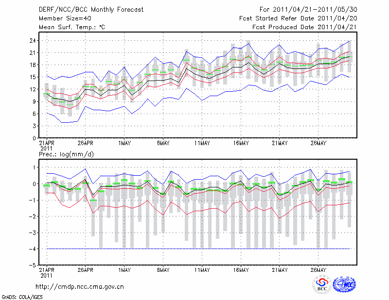 哈 尔 滨 (LAT:45.75 LON:126.77) 2011-04-21        预测