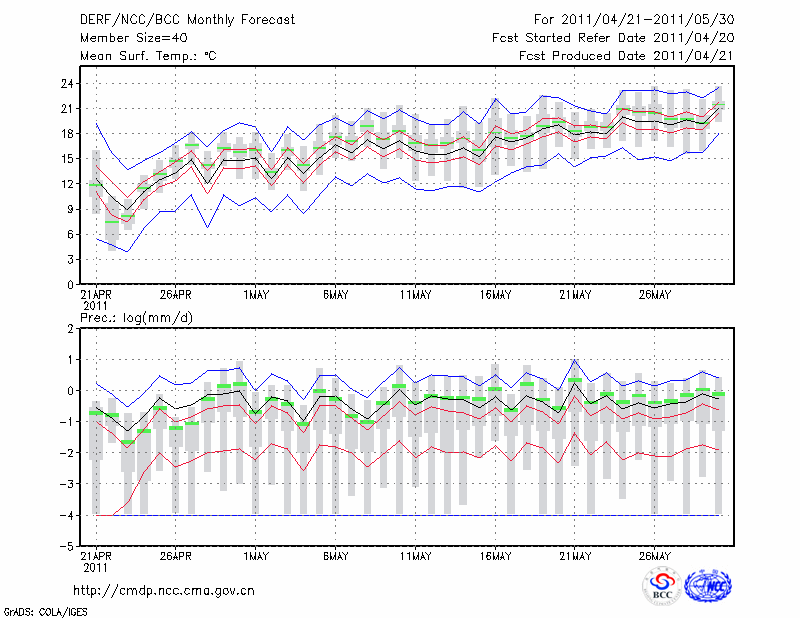 呼和浩特 (LAT:40.82 LON:111.68) 2011-04-21        预测