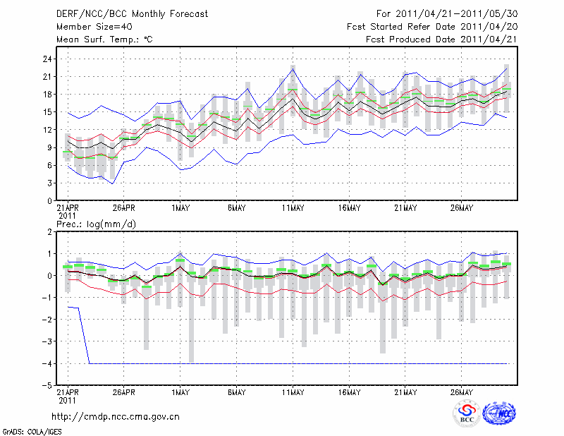 牡 丹 江 (LAT:44.57 LON:129.60) 2011-04-21        预测