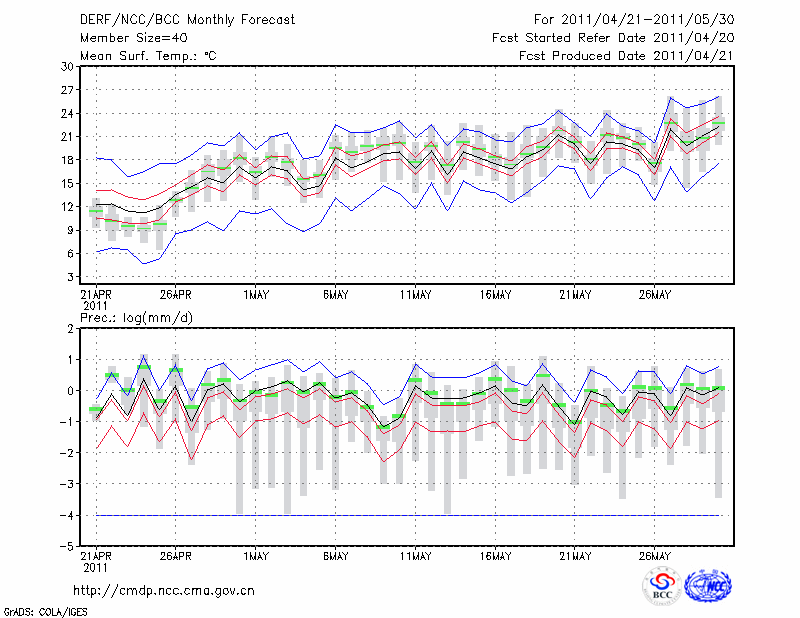 赤 峰 (LAT:42.27 LON:118.97) 2011-04-21        预测