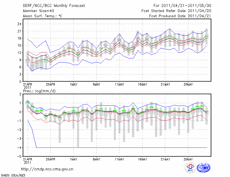 延 吉 (LAT:42.88 LON:129.47) 2011-04-21        预测