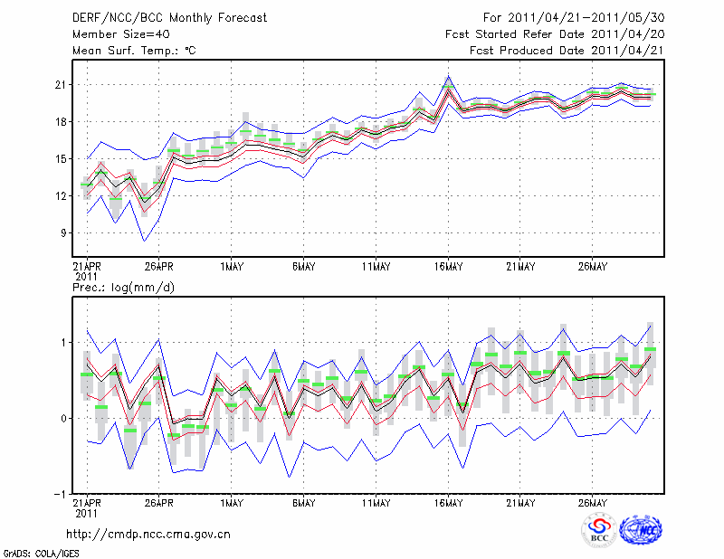 丽 江 (LAT:26.83 LON:100.47) 2011-04-21        预测