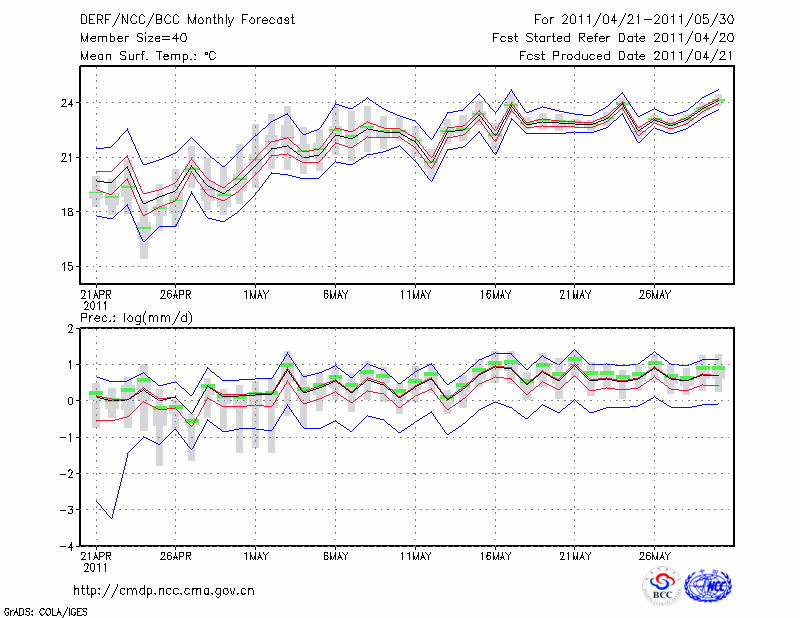 临 沧 (LAT:23.95 LON:100.22) 2011-04-21        预测