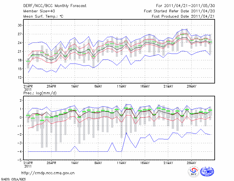 蚌 埠 (LAT:32.95 LON:117.37) 2011-04-21        预测