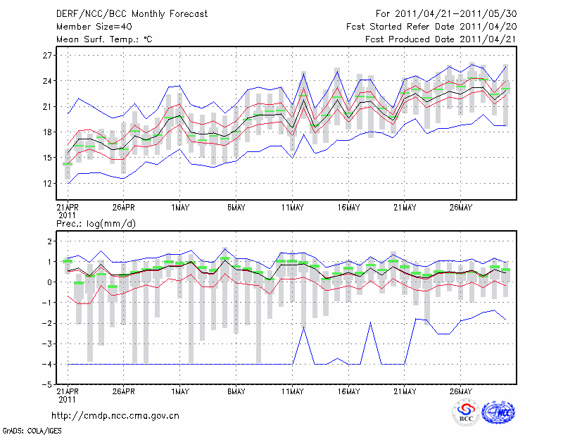 东 台 (LAT:32.87 LON:120.32) 2011-04-21        预测