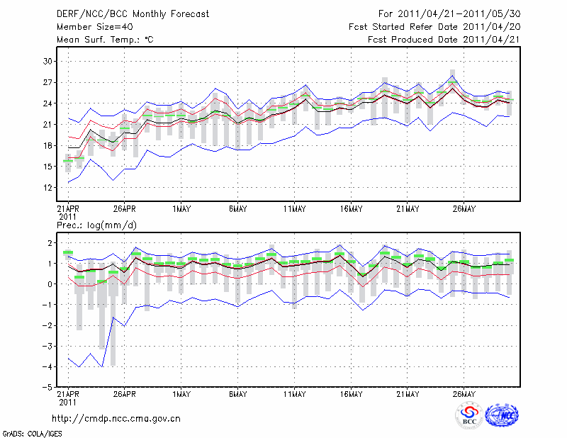 屯 溪 (LAT:29.71 LON:118.28) 2011-04-21        预测