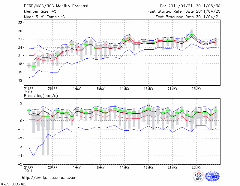南 昌 (LAT:28.60 LON:115.92) 2011-04-21        预测