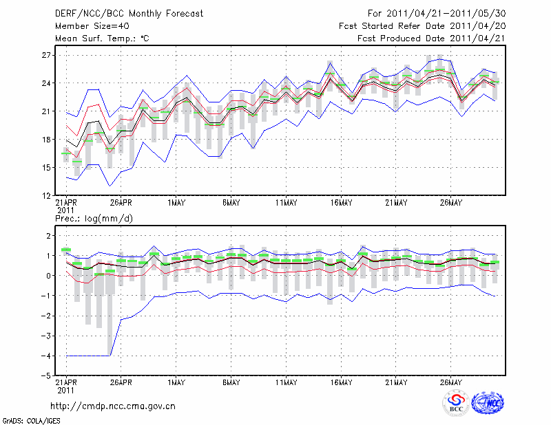 温 州 (LAT:28.02 LON:120.67) 2011-04-21        预测