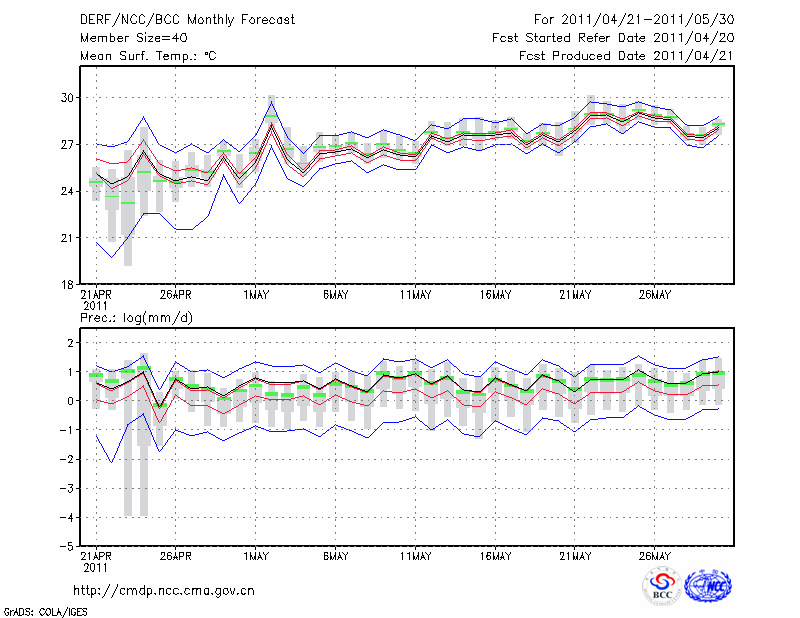 南 宁 (LAT:22.82 LON:108.35) 2011-04-21        预测