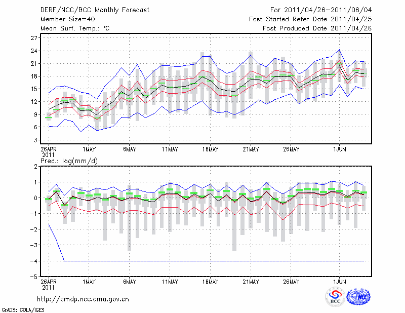 佳 木 斯 (LAT:46.49 LON:130.17) 2011-04-26        预测